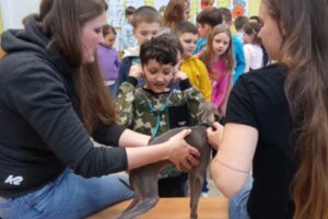 Paní veterinářka se ptala dětí, kdo má doma jaké zvířátko a jak to probíhá, když přijdou na běžnou prohlídku a očkování. Pak jim také vyprávěla různé zážitky a co vše může naše domácí mazlíčky potrápit. Jaká je stavba těla, nebo co můžou a nemůžou k jídlu.