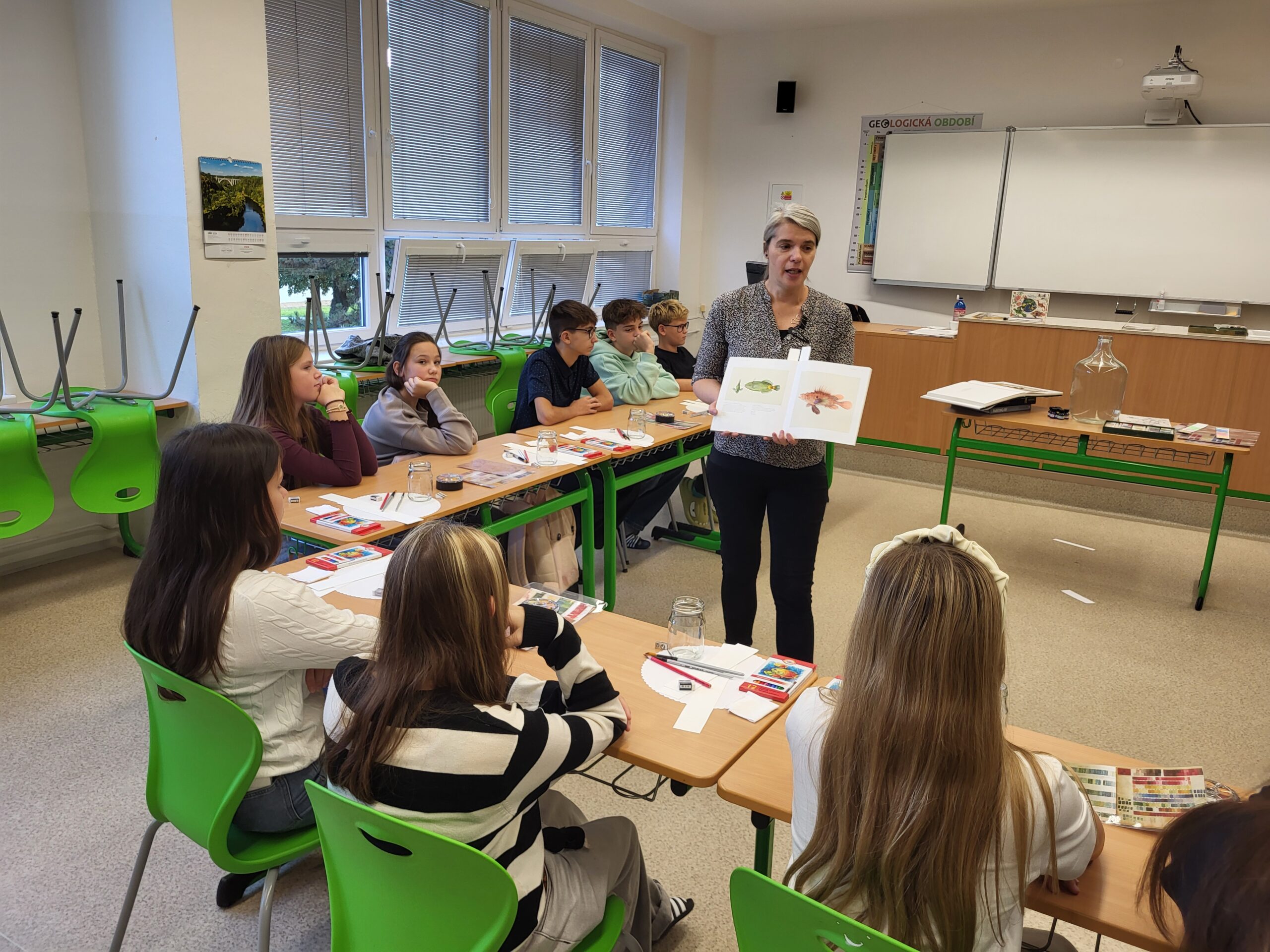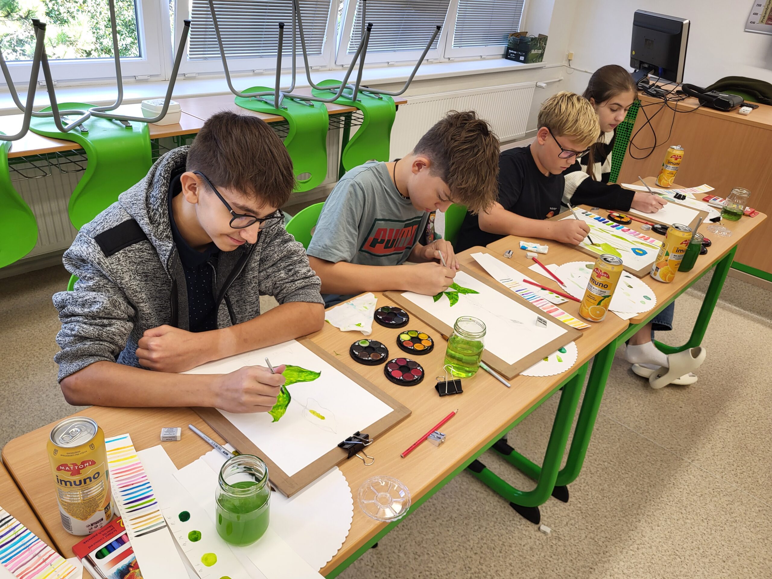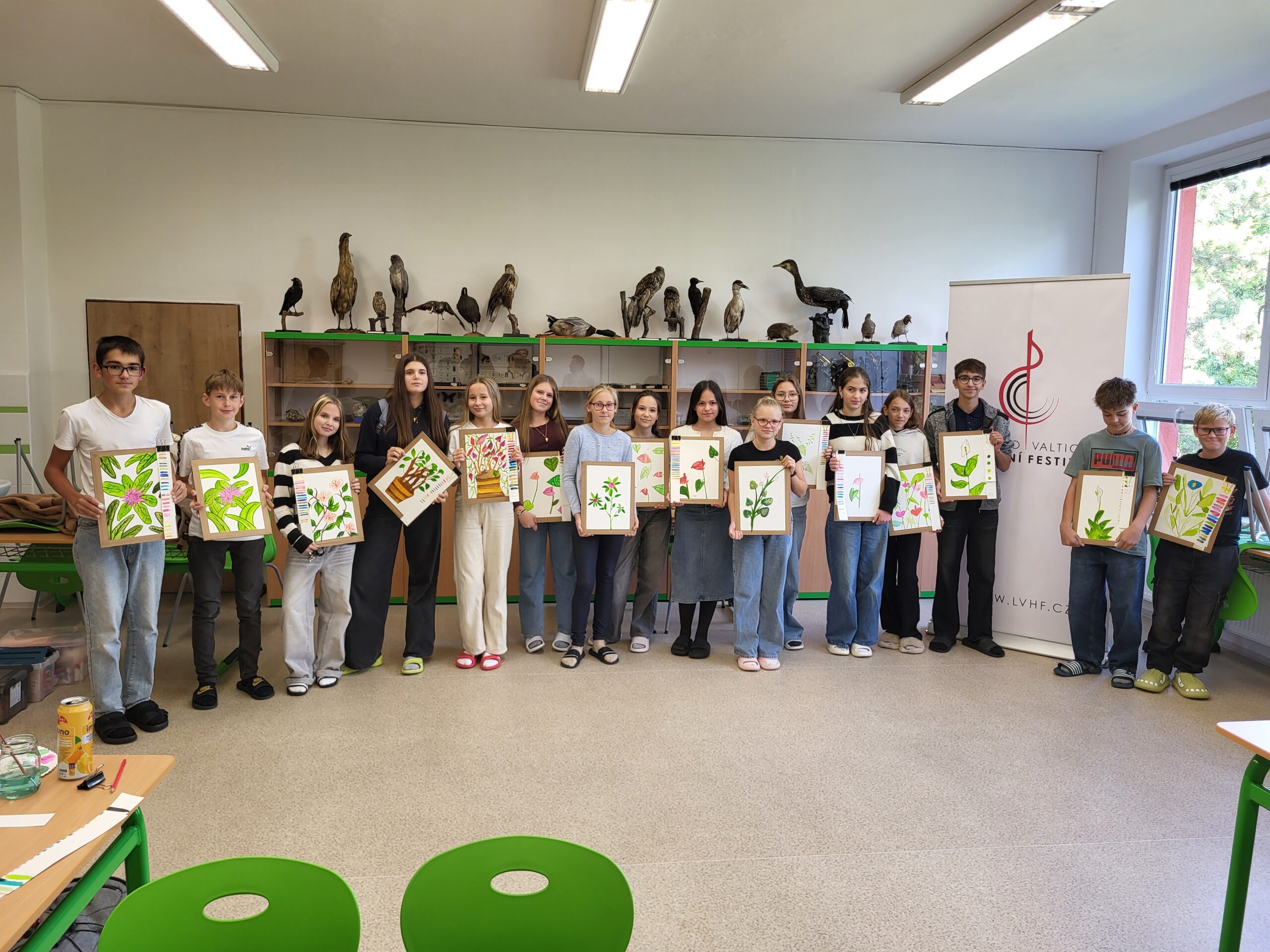 Ve čtvrtek 2. října se šestnáct žáků sedmého ročníku zúčastnilo výtvarné dílny, kde se seznámili s technikou akvarelové malby rostlin, inspirovanou prací bratrů Bauerových. Tito tři bratři, narození v polovině 18. století ve Valticích, se proslavili jako významní malíři a ilustrátoři odborných botanických a zoologických publikací. Jeden z nich se stal ředitelem Lichtenštejnské galerie ve Vídni, druhý dvorním malířem anglického krále Karla III. a třetí se věnoval rozsáhlým expedicím, například do Austrálie.