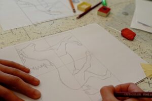 V pondělí 21. března se na naší škole vůbec poprvé konal dvouhodinový výtvarný minikurz „Základy kresby pravou mozkovou hemisférou“, resp. jeho první část věnovaná jednoduché lineární kresbě. Byla jsem nesmírně potěšena hojnou účastí našich žákyň a žáků napříč všemi ročníky – dostavili se v celkovém počtu 44; původně plánovaná běžná učebna, která nám měla posloužit jako výtvarný ateliér, tak nakonec zůstala prázdná, a s kreslířkami a kreslíři jsme se museli přemístit do prostornější učebny fyziky. Úvodní slova minikurzu patřila stručnému výkladu o technice kresby za pomoci pravé mozkové hemisféry a její historie, která sahá do konce 70. let 20. století. Následně jsme se podívali na obrázek anatomie mozku a zdůvodnili si, proč se snažíme při kresbě využívat funkcí jeho pravé, nikoliv levé, poloviny. Do tajů této metody jsme se pak pokusili proniknout prostřednictvím jednotlivých cílených kreslířských cvičení. Vrcholem našeho snažení se stala jednoduchá lineární kresba koně, na jejímž základě jsme si uvědomili, že umění „něco nakreslit“ není ani tak důsledkem velkého nadání, ale spíše výsledkem důsledného využívání několika schopností, kterými každý z nás disponuje, a které je třeba rozvíjet. Tak jako v jiných oblastech, i v kreslení platí, že teprve cvičení a trénink dělá mistry.