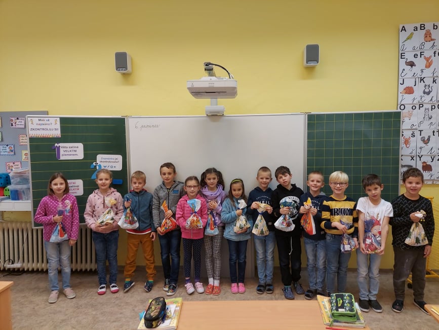 V pondělí 6.12. má svátek Mikuláš. Všichni již víme, že naděluje v předvečer svého svátku. Ne jinak tomu bylo i tentokrát. Mikuláš se svojí družinou obcházeli v neděli. Jelikož se ve škole v neděli neučí, zanechali dětem vzkaz i s drobnými dobrotami. Aby balíček mohli žáci 2.B dostat, zarecitovali všichni alespoň básničku paní učitelce. Ve stejný den si žáci vyrobili flipbook a přiučili se tak něco o tom, kdo vůbec svatý Mikuláš byl.