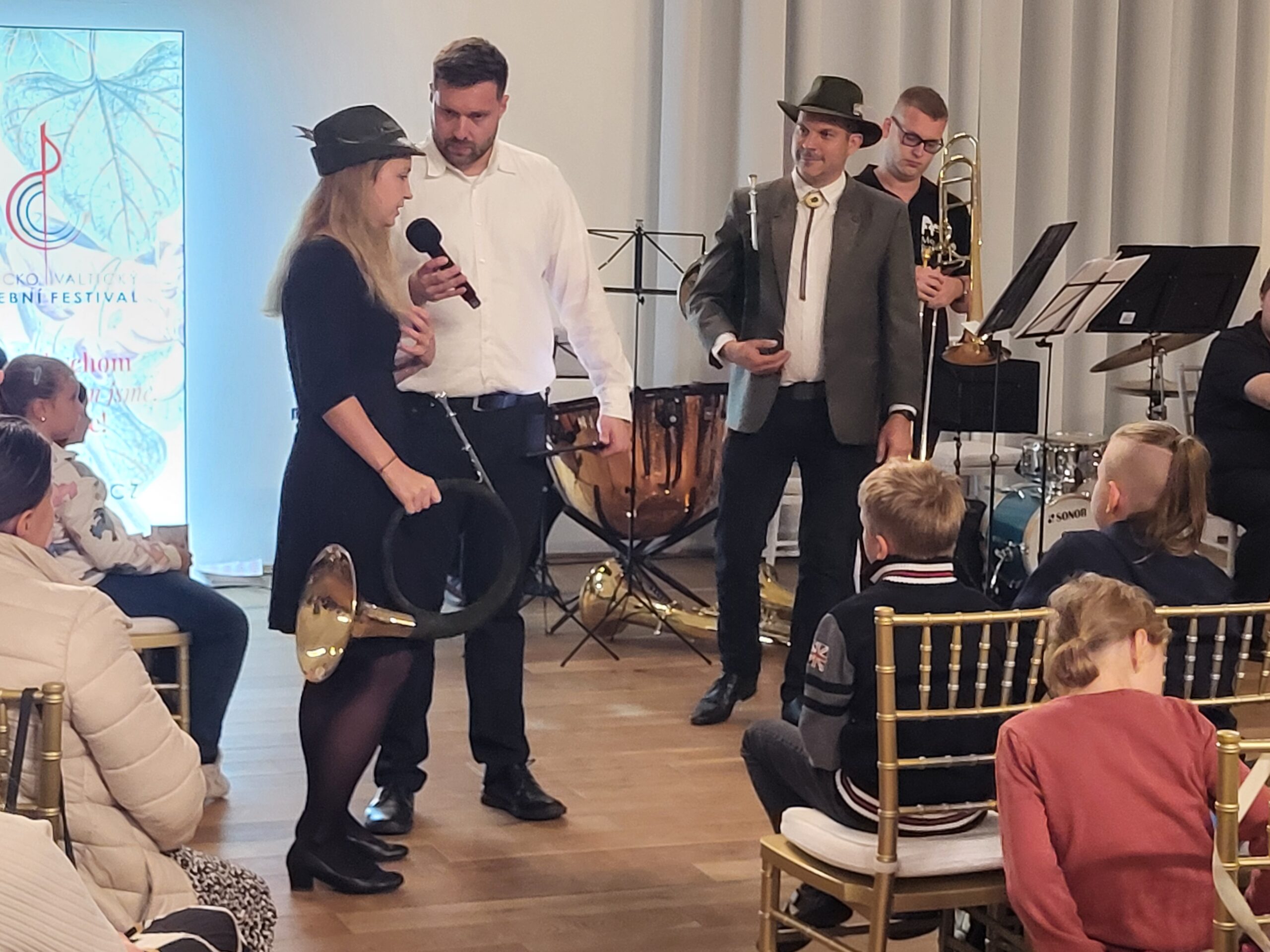 V pátek 26. září žáci prvního až šestého ročníku strávili roztomilou hodinu ve společnosti Moravia Brass Bandu, špičkového žesťové hudební tělesa, které si pro naše žáky v rámci Lednicko-valtického hudebního festivalu připravilo edukační koncert.