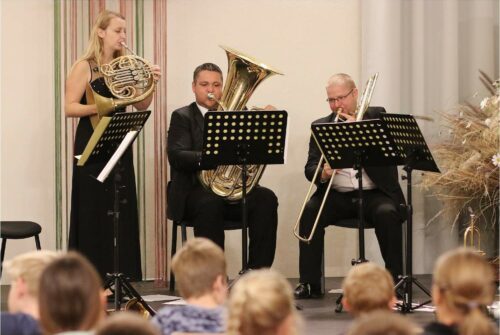 Letos se žáci blíže seznámili se žesťovými nástroji. Toto seznámení jim zprostředkovali umělci ze žesťového kvintetu Moravia Brass Bandu. Moderátor z divadla Radost postupně žákům představil trubky, lesní rohy, pozoun a nakonec tubu. Mezi informacemi se pochopitelně hrály i ukázky různých skladeb. Namátkou – něco málo od Mozarta, Dvořáka, slavnostní prezidentské fanfáry, hudba z filmů a hudba lovecká.