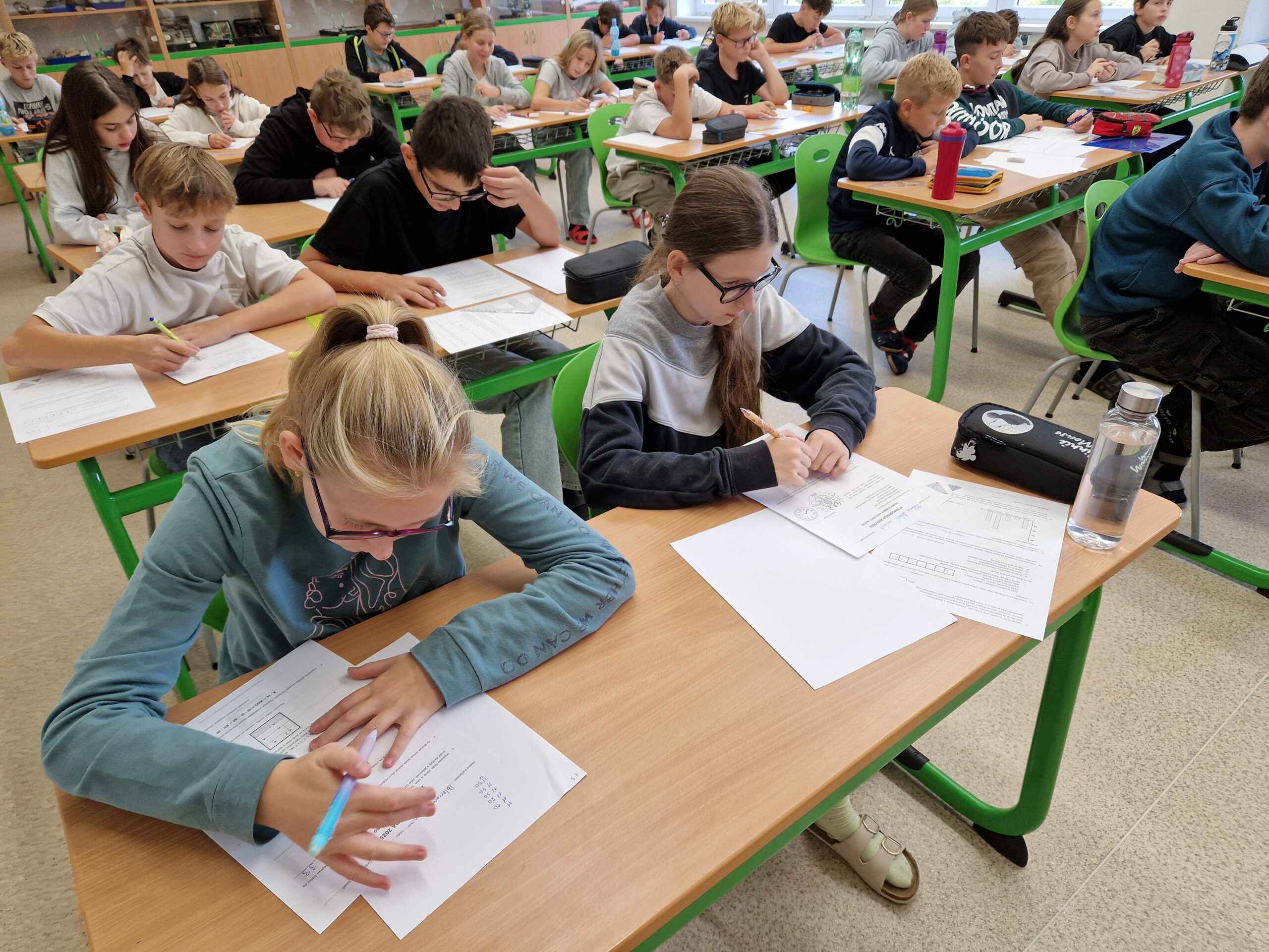 V říjnu se žáci 6. – 9. ročníku naší školy účastnili školního kola soutěže matematických znalostí. Pro každý ročník je připraveno 15 úloh, které žáci samostatně 60 minut řeší. Za každou správně vyřešenou úlohu získají žáci 1 bod. Úspěšným řešitelem se stává každý soutěžící, který bude mít 10 bodů. Do soutěže se přihlásilo celkem 60 žáků, kteří se snažili probojovat do okresního kola.