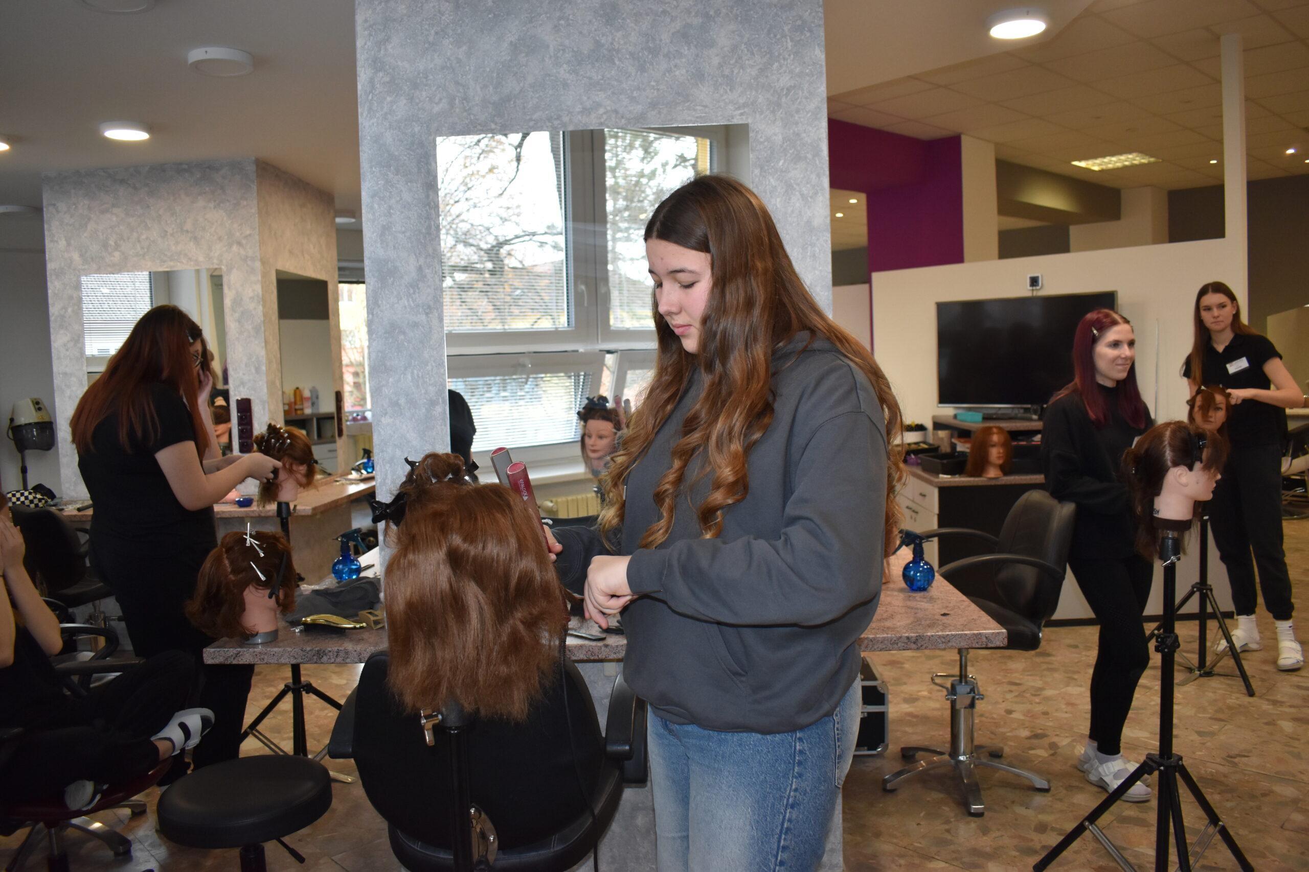 Děvčata pozorovala a také si trošku osahala práci v kadeřnické dílně, kde se právě studentky učily základy stříhání a úpravy vlasů. Na závěr připomenu dílnu pro sociální pracovnice. Tady dívky zjistily, jaké dovednosti jsou potřebné pro práci s lidmi v různých životních situacích. Koupaly „miminko“, převlékaly postele, věnovaly se ručním pracím.