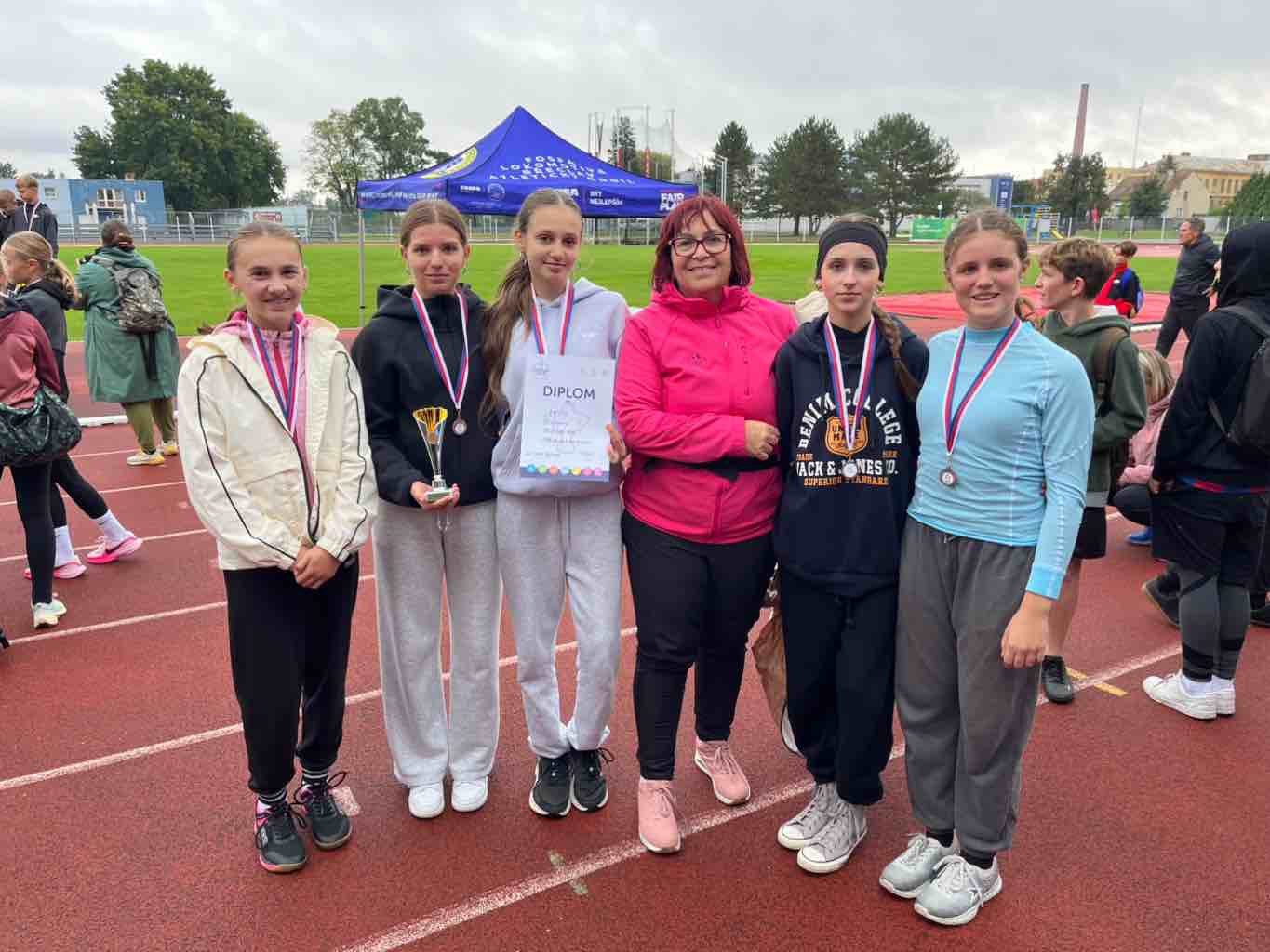 Velmi úspěšné byly také naše starší žákyně, které si díky vyrovnaným výkonům – všechny se umístily do 20. místa – odvezly pohár a medaile za 3. místo. Jejich výkony jasně ukázaly výsledky pravidelného tréninku. Tým tvořily:
