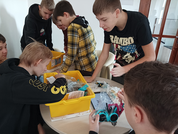 Dále si mohli vyzkoušet robotickou stavebnici Lego Spike Prime, kde měli za úkol rozpohybovat robota, ale nevyužít kola. Seznámili jsme se s robotem Dashem a vyzkoušeli si také robotí box.