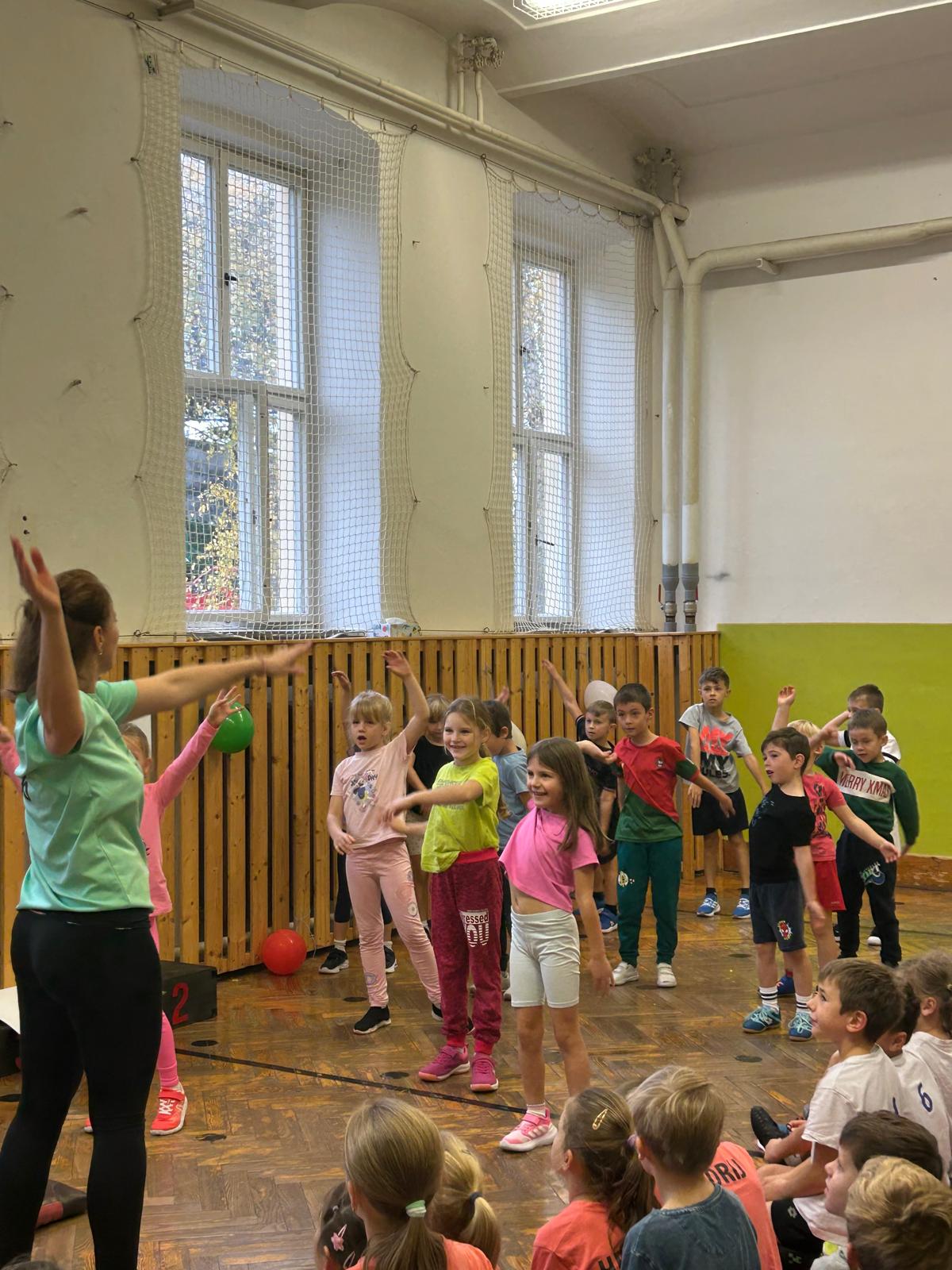 Než soutěž začala, soutěžící se společně rozcvičili, aby se pořádně protáhli a připravili na výkon. Rozcvička pomohla dětem se zbavit trémy a fanoušci povzbuzovali své spolužáky pokřikem: