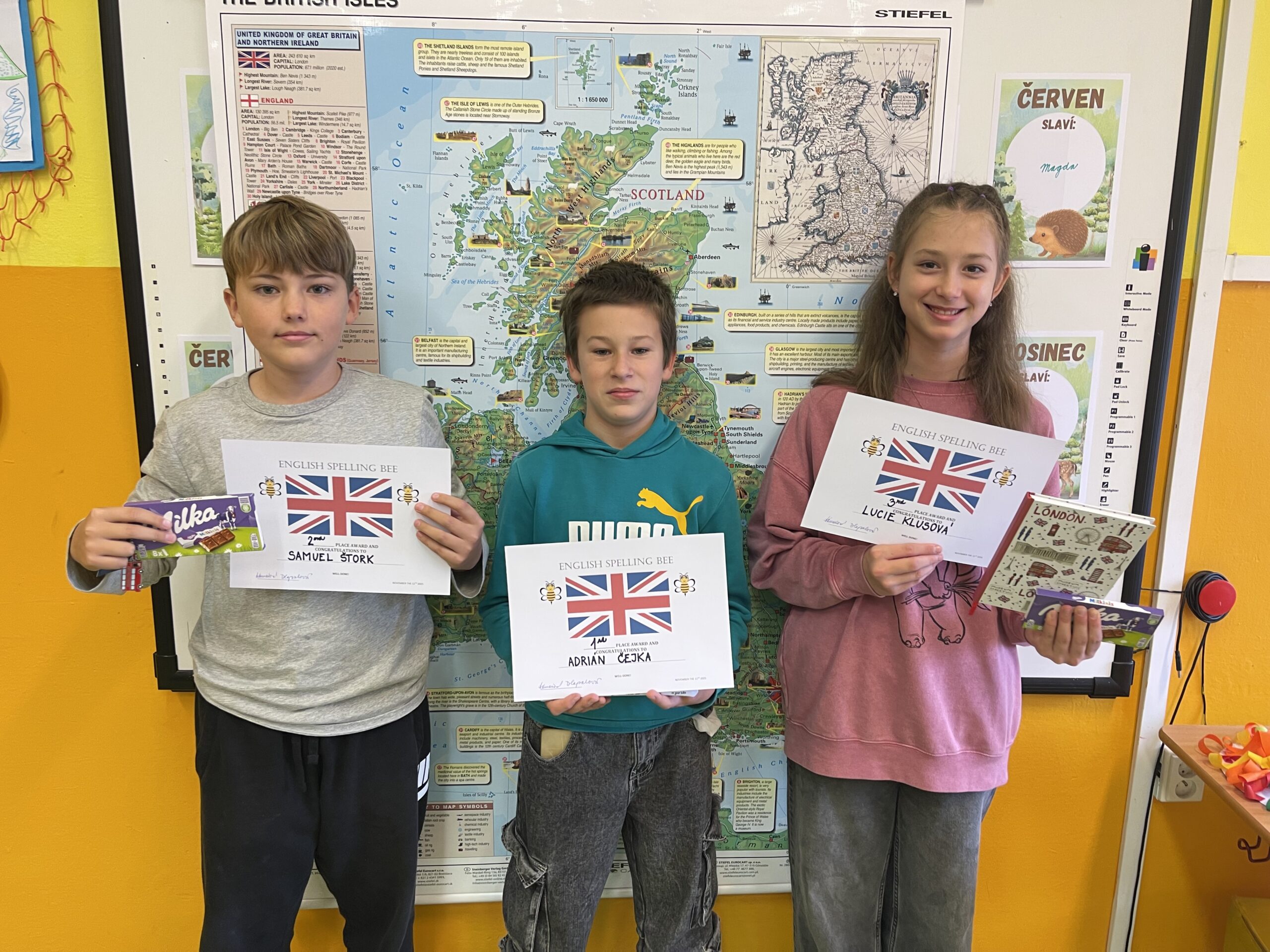 V úterý 11. listopadu se utkali žáci 5. ročníků v anglické soutěži Spelling Bee. Soutěž probíhala během dvou vyučovacích hodin – v první hodině se konala třídní kola, ze kterých postoupilo celkem 10 nejlepších žáků do školního finále. Pět soutěžících reprezentovalo 5.A a pět žáků 5.B.