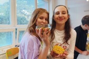 Tato zkušenost nás inspirovala k vytvoření vlastních výtvorů studené kuchyně, které jsme 15.10. s nadšením připravovali přímo ve školní kuchyňce. Každá skupinka svou tvorbu pojala po svém, všichni ale představili velmi originální výtvory.