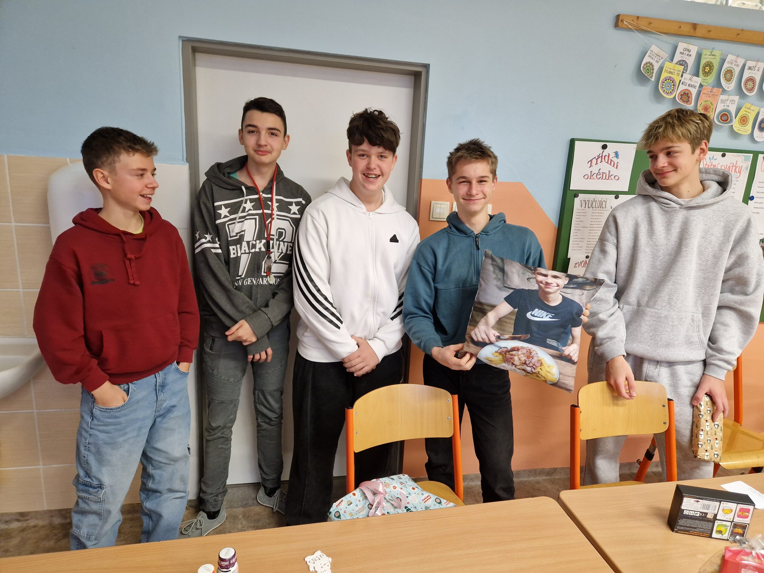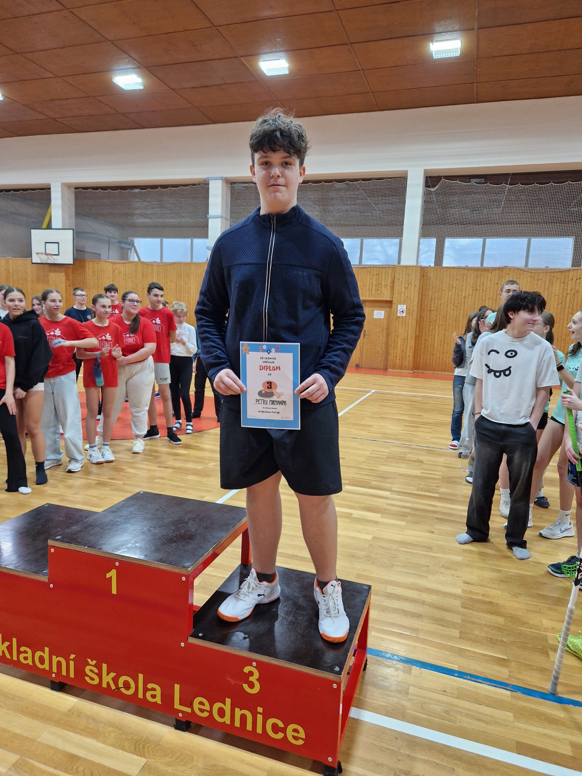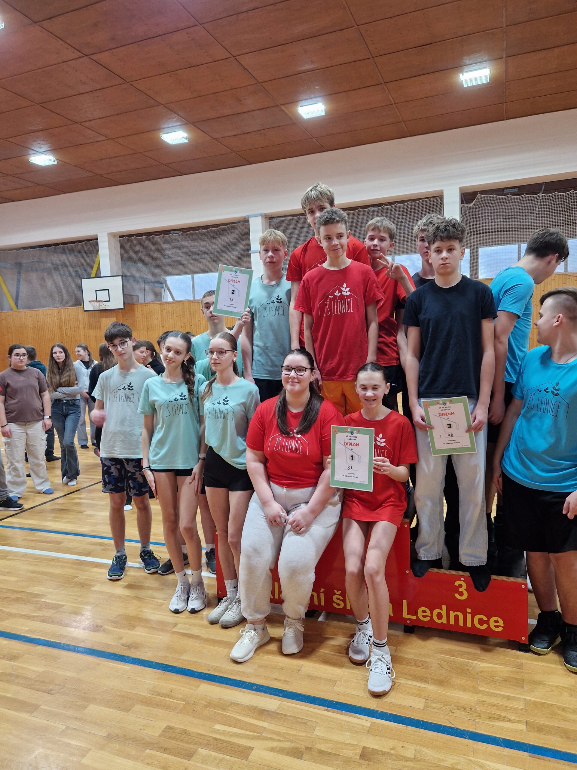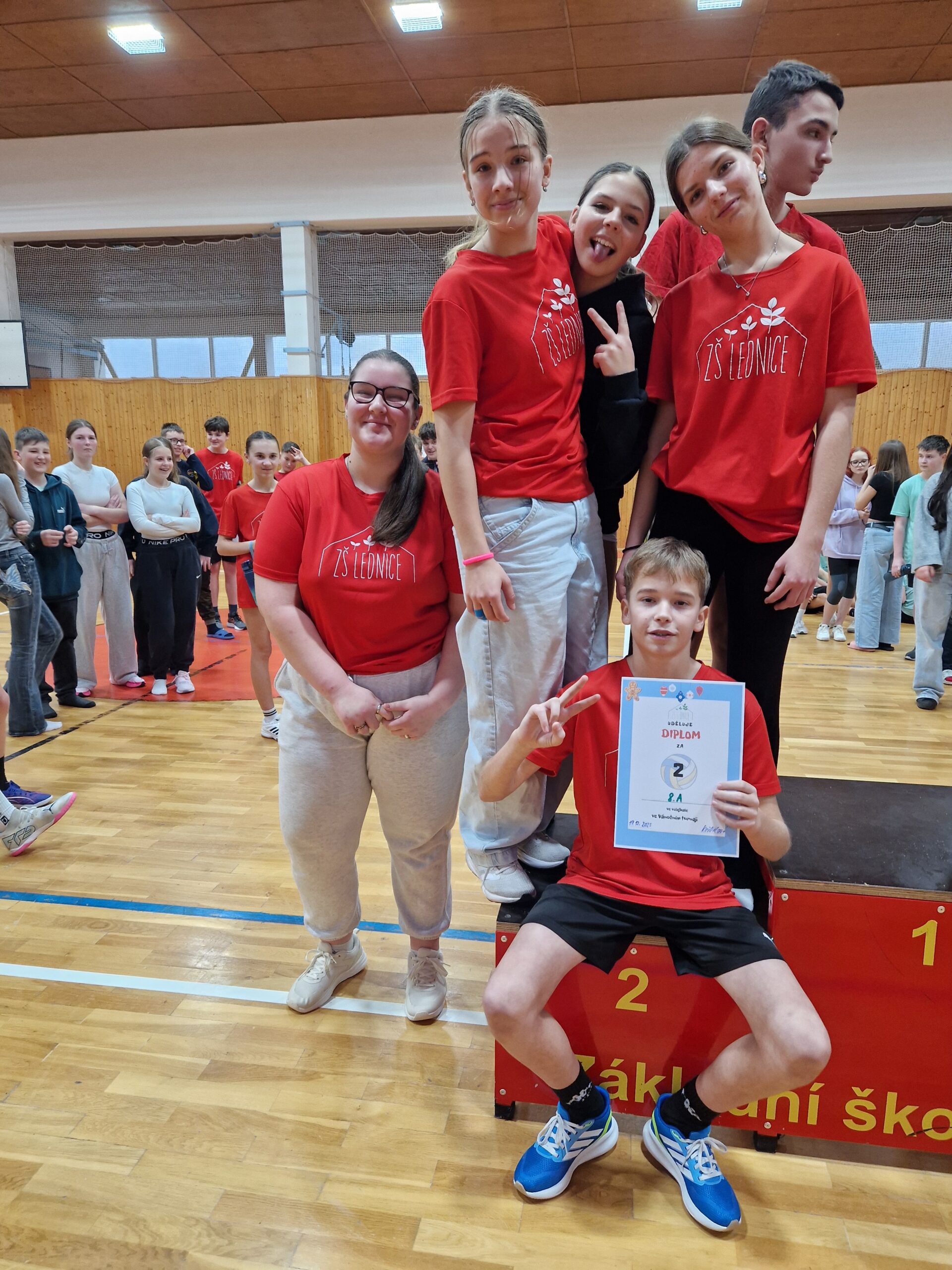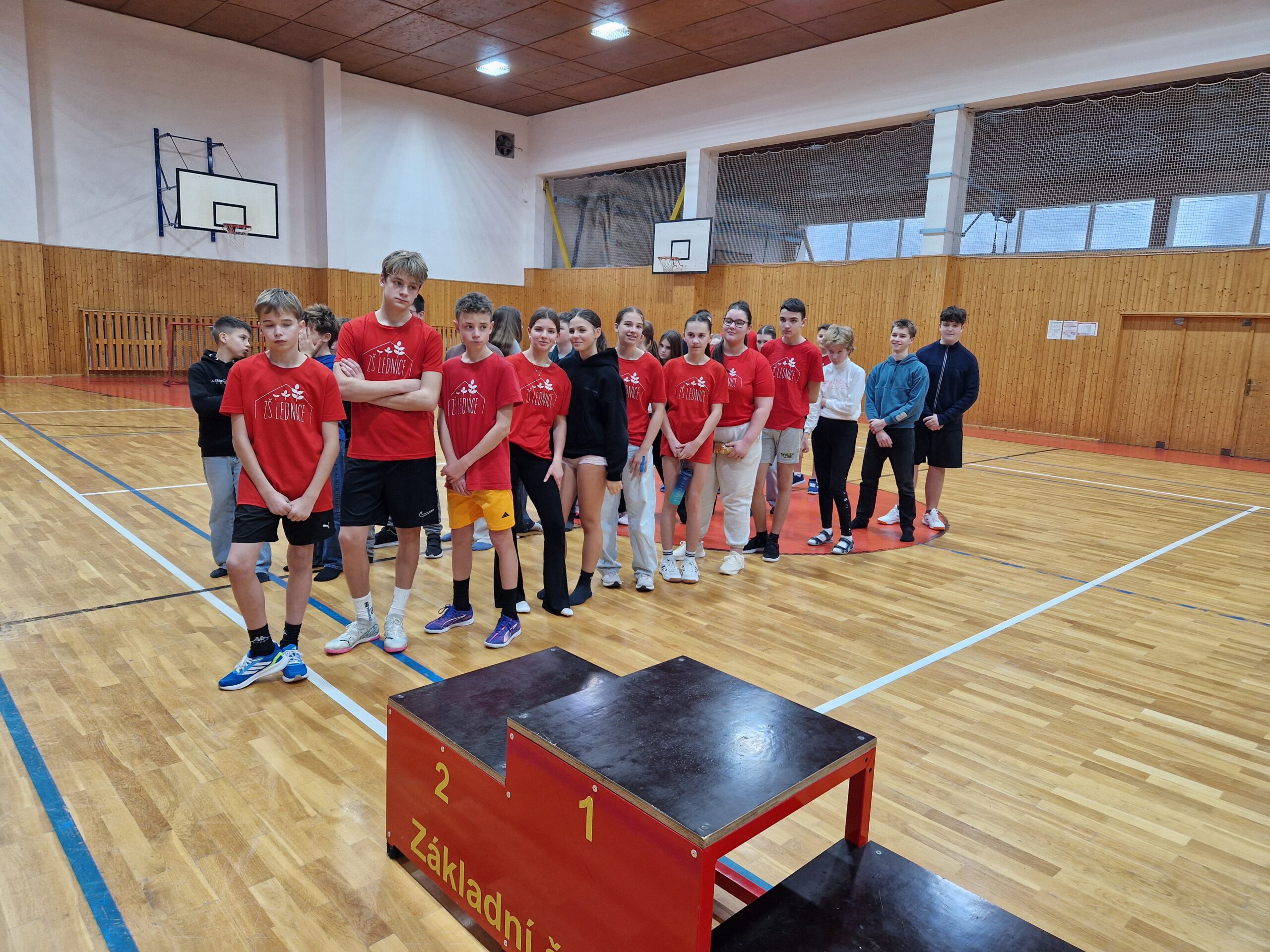Další dvě hodiny patřily sportovnímu klání. Třídní týmy osmých a devátých tříd soutěžily ve volejbale, florbalu a jednotlivci ve stolním tenise. Naše sportovně založená třída si vedla výborně ve florbalu, zde jsme obsadili 1. místo. Volejbalisti byli druzí a Petr Forman v ping pongu třetí.