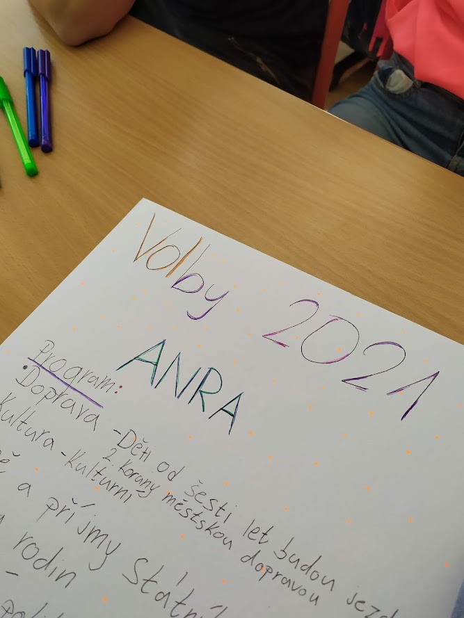 Ve výchově k občanství jsme se učili o volbách. A protože se blíží volby do Poslanecké sněmovny parlamentu České republiky, zahráli jsme si se šesťáky a osmáky na volby. Děti se rozdělily do skupin, každá skupina si zvolila lídra strany, vymysleli si název strany, např. Rohlík, ANRA, Brumík, Strana všech atd. a sestavovali volební program své strany. Potom jsme pozvali paralelní třídu, každý lídr strany vystoupil se svým programem a začaly volby. Samozřejmě se volilo tajně, tak jak to ve skutečných volbách chodí. Nakonec sčítací komise sečetla hlasy a vyhlásili jsme vítěznou stranu. Na závěr jsme ještě debatovali o tom, co která strana nabízela a proč zrovna vyhrála s velkým rozdílem ta jedna strana. V příštích volbách někteří už budou moct volit a věřím, že budou na své první volby dobře připraveni.