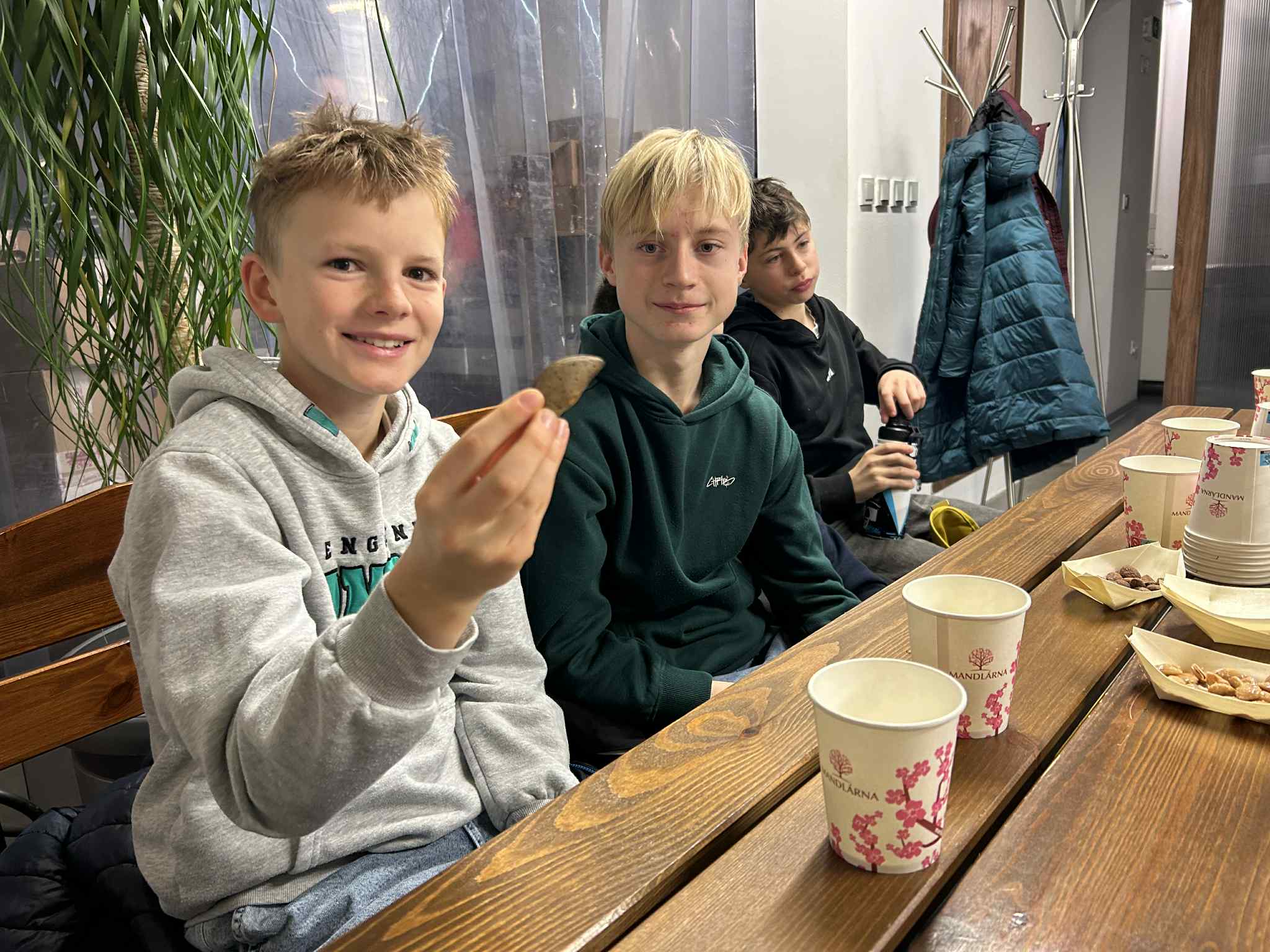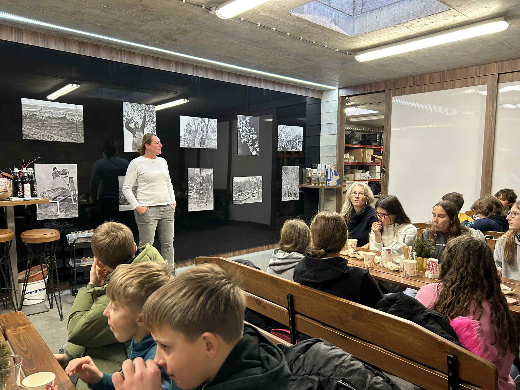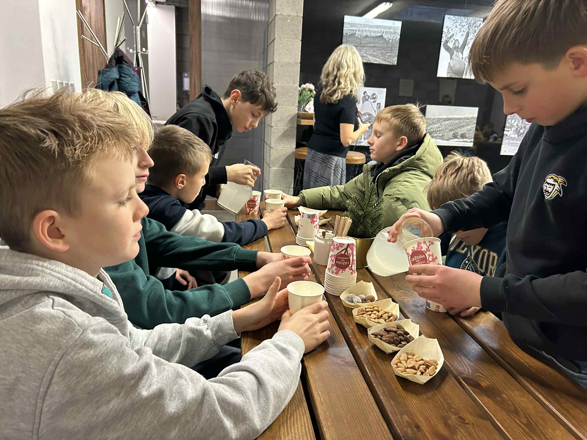 Poté jsme navštívili Mandlárnu, kde paní Kopová vyprávěla o historii pěstování mandloní v Hustopečích. Žáci ochutnali různé druhy mandlí – sladké, slané i uzené – a seznámili se se zvláštním druhem mandle „husle“, vyšlechtěným na Mendelově univerzitě v Lednici a pěstovaným právě v Hustopečích. Husle si děti mohly osobně prohlédnout.