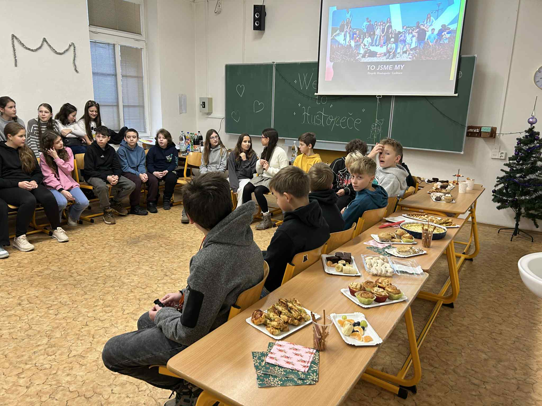 V pondělí 15. prosince se žáci 6.B vydali na první setkání v rámci mezipředmětového projektu se žáky 7. ročníku Gymnázia Hustopeče. Projekt propojuje angličtinu, dějepis, občanskou výchovu, informatiku a výtvarnou výchovu a staví na dopisování, společných aktivitách a setkáních žáků obou škol.